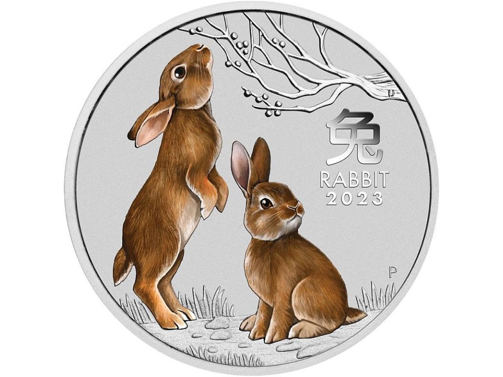 Rub stříbrné mince Australian Lunar Series III 2023 Year of the Rabbit (Rok králíka) Coloured (barvená)