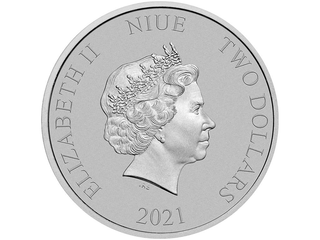 Stříbrná mince z novozélandské mincovny New Zealand Mint pod hlavičkou Niue, nezávislého státu volně přidruženého k Novému Zélandu. Oficiální měnou Niue je novozélandský dolar. Mince Niue jsou raženy pouze pro sběratelské účely pod nominální hodnotou novozélandského dolaru. Dolar Niue je vydáván jako „NIFC“ (Not Intended for Circulation / není určeno pro oběh) pouze pro sběratelské účely. Některé ostrovní země, jako Niue, vydělávají na tomto specializovaném sběratelském trhu významnou část svého národního příjmu.