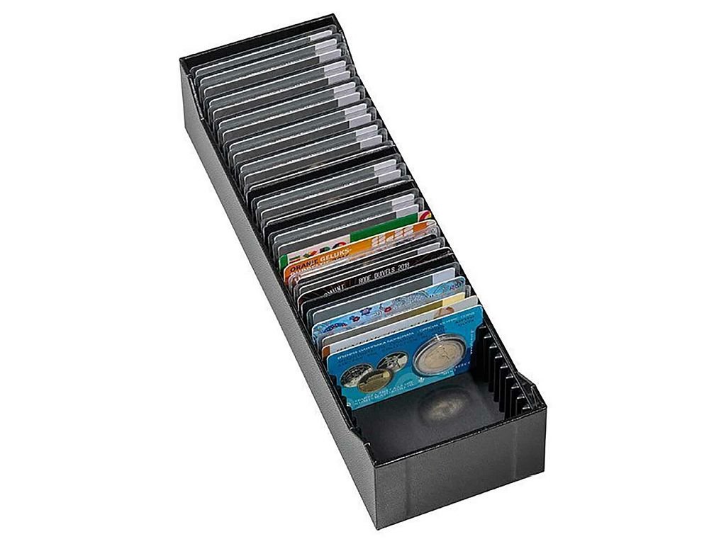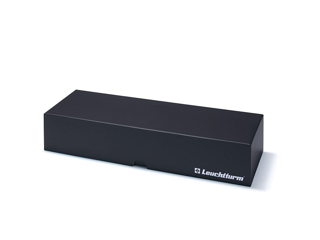 Praktický archovační box Leuchtturm LOGIK poskytuje ideální úložný systém pro 40 slitků v blistrech (85 x 54 mm) nebo mincovních kartách. Kompatibilní se všemi běžně dostupnými značkami zlatých, stříbrných, platinových či palladiových slitků Argor-Heraeus, Münze Österreich, PAMP, Valcambi…
