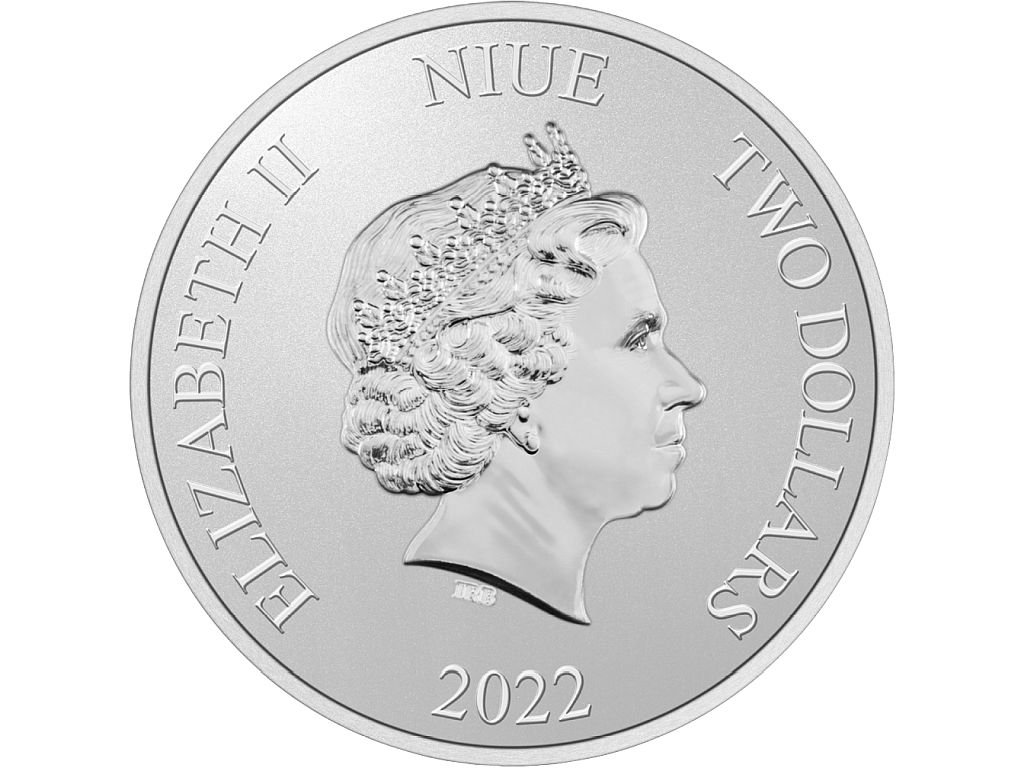 Stříbrná mince z novozélandské mincovny New Zealand Mint pod hlavičkou Niue, nezávislého státu volně přidruženého k Novému Zélandu. Oficiální měnou Niue je novozélandský dolar. Mince Niue jsou raženy pouze pro sběratelské účely pod nominální hodnotou novozélandského dolaru. Dolar Niue je vydáván jako „NIFC“ (Not Intended for Circulation / není určeno pro oběh) pouze pro sběratelské účely. Některé ostrovní země, jako Niue, vydělávají na tomto specializovaném sběratelském trhu významnou část svého národního příjmu.